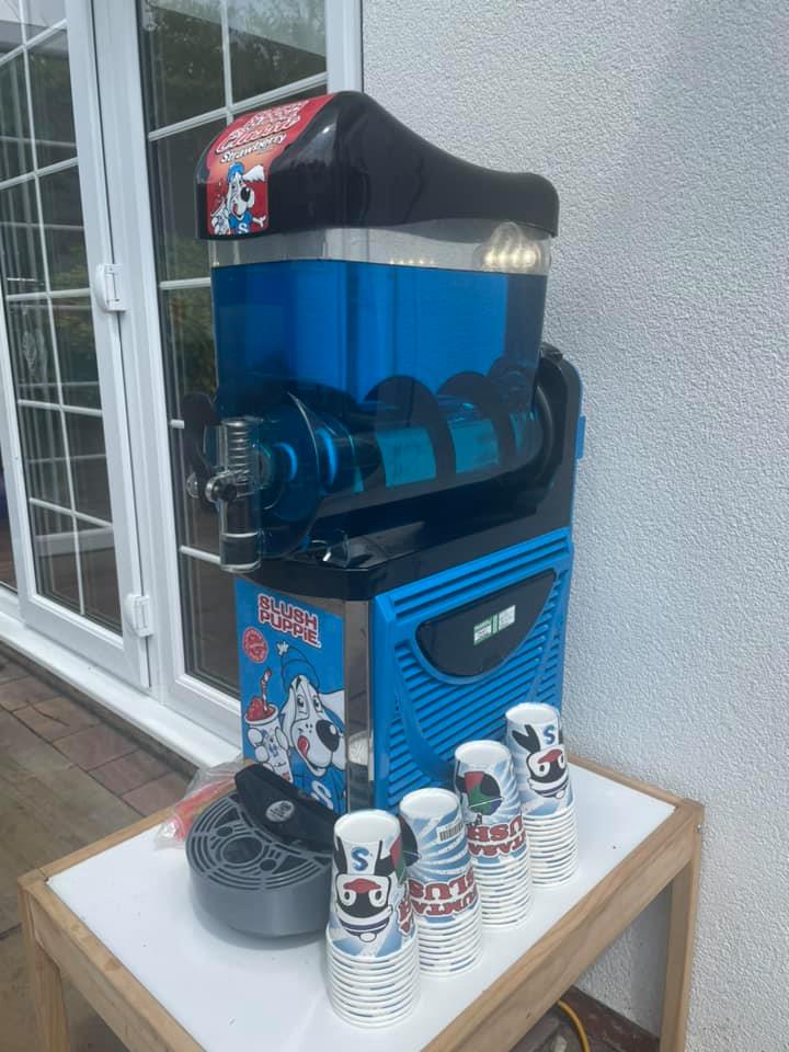 This package includes 40 servings of any flavoured slush with cups, lids and straws included. The hot dog steamer comes with 40 servings of hot dogs and buns, all utensils and sauces included.