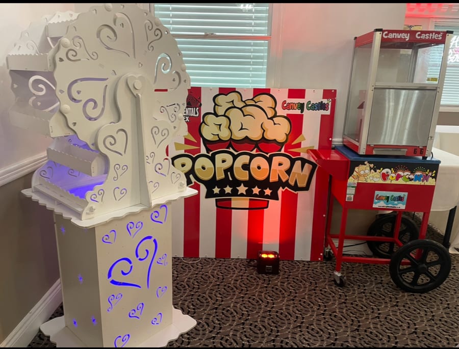 Indulge in the ultimate sweet and savory experience with Fun Foods Package 7! Our confident and irresistible package includes an incredible 8 pocket white sweet wheel, elegantly displayed on a stand. And that's not all - we'll even provide the sweets upon your request! But wait, there's more! Get ready to take your taste buds on a rollercoaster ride with our popcorn machine that guarantees 40 servings of pure bliss. So why settle for ordinary when you can have extraordinary? Treat yourself and your guests to Fun Foods Package 7 and make your event truly unforgettable!