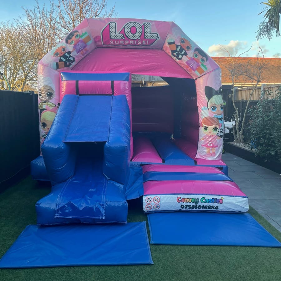 Searching for the ideal entertainment option for your event in Essex? Look no further! Canvey Castles 12ft x 17ft Pink And Blue LOL Surprise Design 2 Slide Combo Bouncy Castle in Essex is the perfect choice. Our team is committed to delivering exceptional service, providing hassle-free setup and takedown, so you can focus on enjoying the day. We cater to various event types and ensure that your guests have an unforgettable experience.