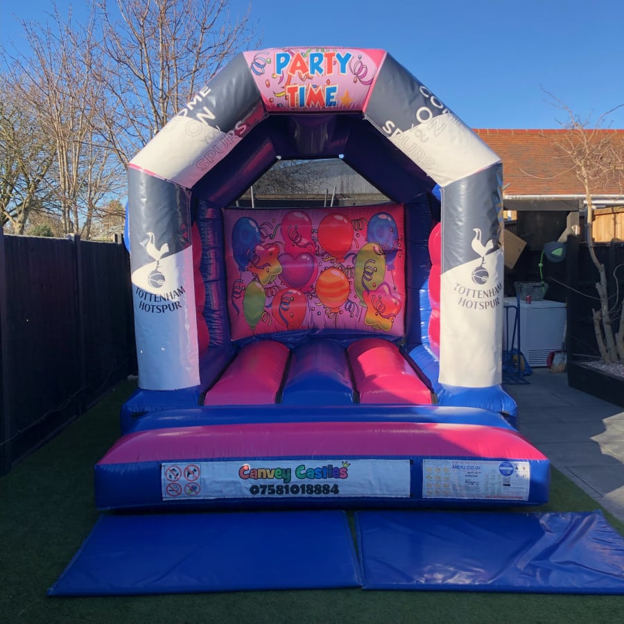 Make your next event a memorable one with the 10ft x 12ft Pink and Blue Tottenham Hotspurs Bouncy Castle in Essex. Contact Canvey Castles today to book your inflatable and let the fun begin!