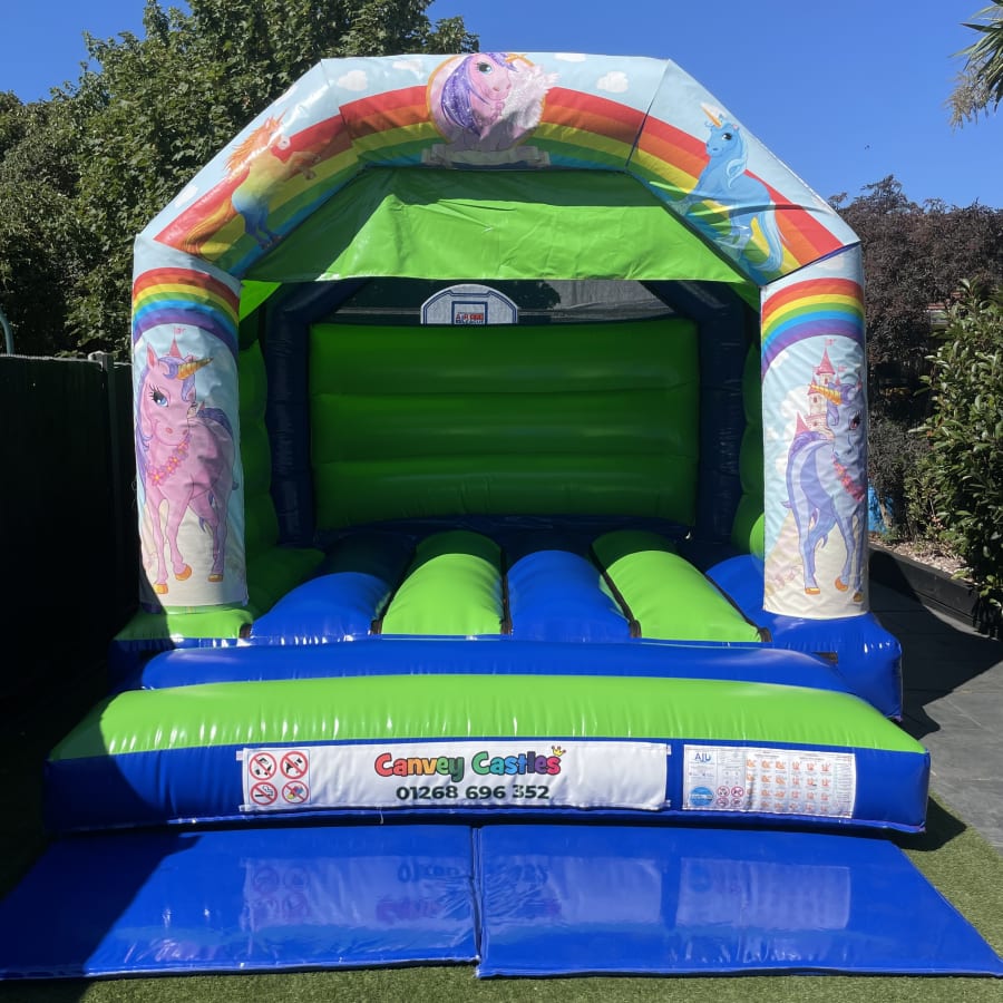 Our 12ft x 12ft Green and Blue Unicorn Bouncy Castle in Essex is delivered and set up by our expert team, ensuring a seamless experience from start to finish. Whether you're hosting a birthday party in Basildon, a community event in Chelmsford, or any celebration across Essex, Canvey Castles ensures top-notch service and satisfaction.