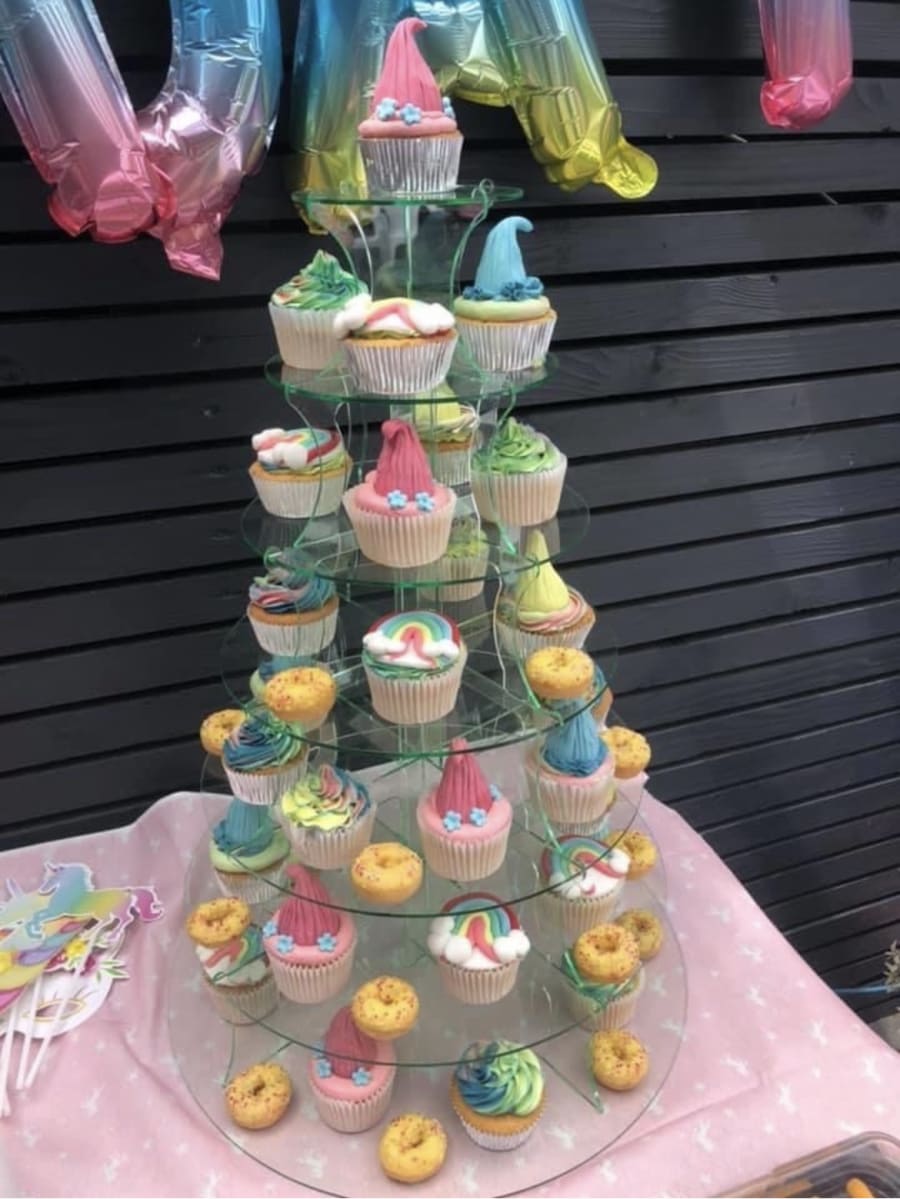 7 TIER ACRYLIC CUPCAKE STAND FOR HIRE IN ESSEX, A GREAT WAY TO PRESENT YOUR CAKES.