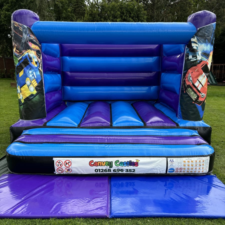 Looking for the perfect addition to your upcoming event in Essex? Our 12ft x 12ft Blue and Purple Hot Wheels Low Height Bouncy Castle is just what you need to bring the fun and excitement to your party. This vibrant bouncy castle features a colorful design that will capture the attention of all children, making it an instant hit at any gathering.