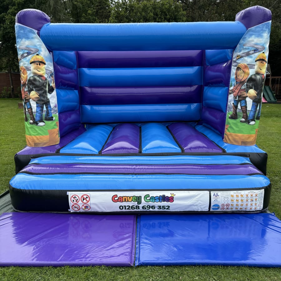 12ft x 12ft Blue and Purple Roblox Low Height Bouncy Castle in Essex