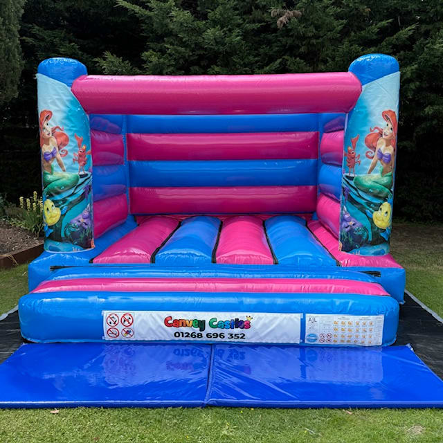 Canvey Castles 12ft x 12ft Pink and Blue Low Height Little Mermaid Bouncy Castle in Essex