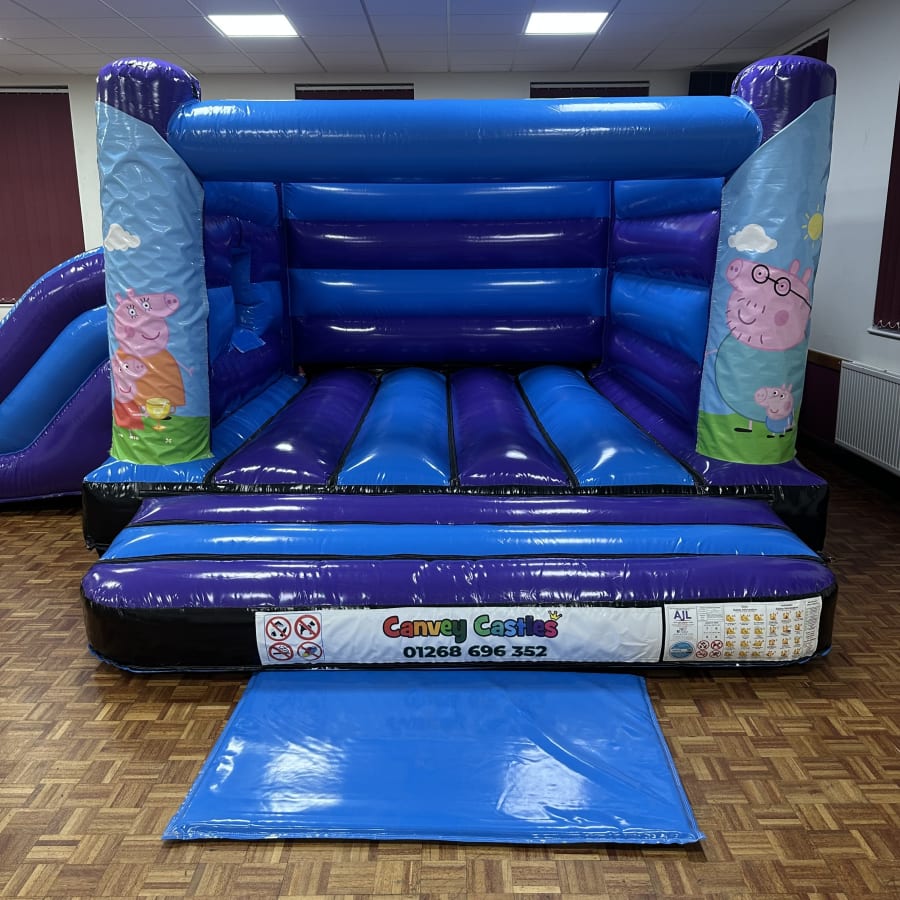 16ft x 17ft Blue and Purple Peppa Pig Design 1 Low Height Slide Combo Bouncy Castle