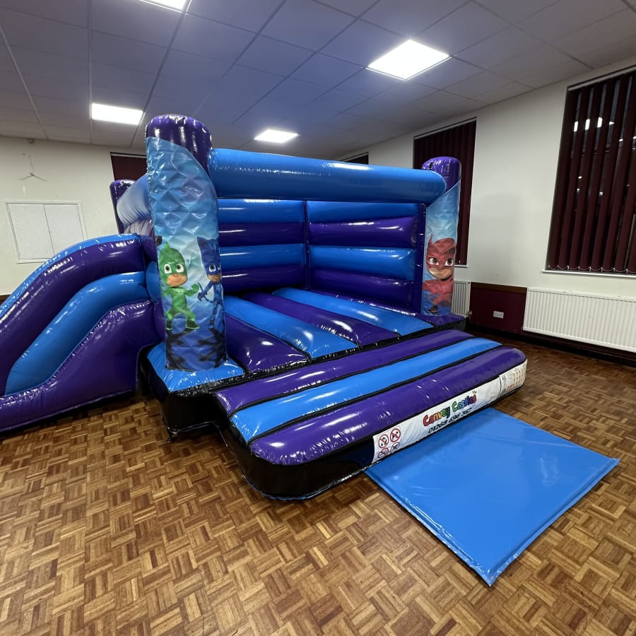 16ft x 17ft Blue and Purple PJ Masks Low Height Slide Combo Bouncy Castle