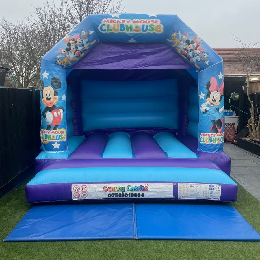 Canvey Castles 12ft x 12ft Light Blue and Purple Mickey Mouse Clubhouse Bouncy Castle in Essex