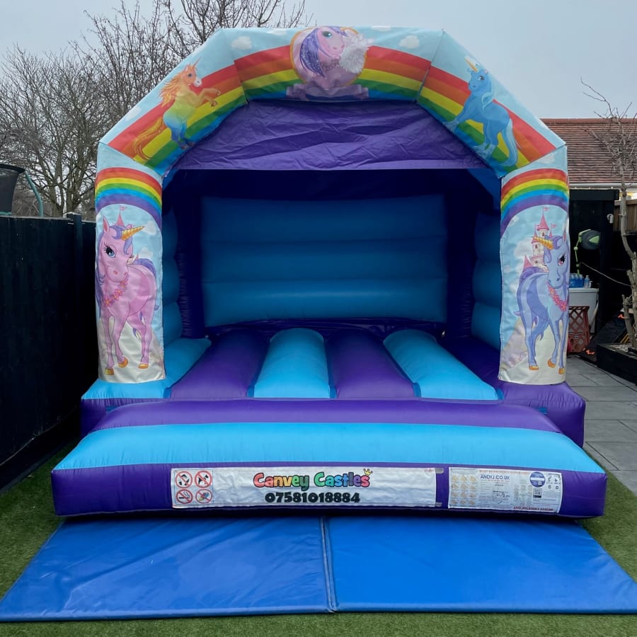 Explore the delightful world of unicorns with our reliable and convenient service. We proudly offer the canvey castles 12ft x 12ft Light Blue and Purple Unicorn Bouncy Castle in Essex, ensuring timely delivery and hassle-free setup. Our team is dedicated to providing exceptional service, making your event planning effortless and enjoyable.