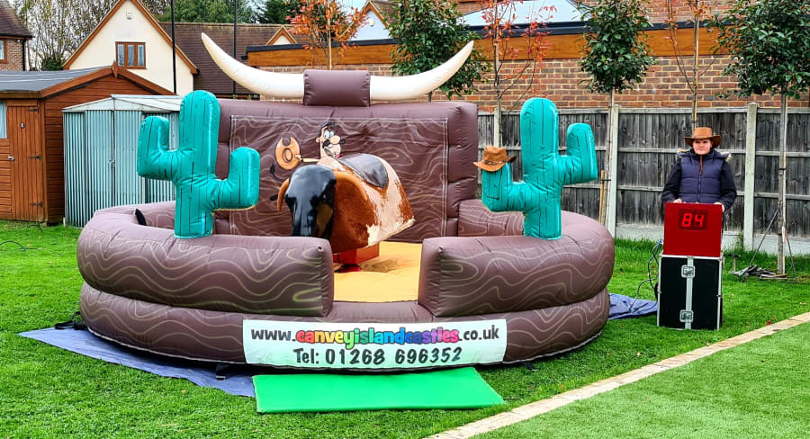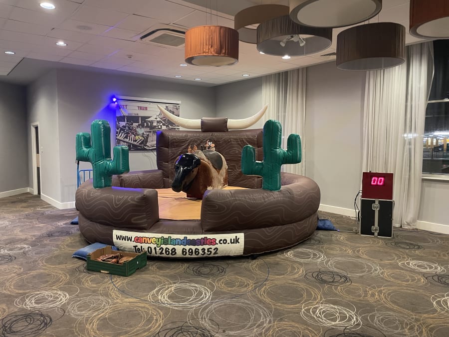 This exciting bucking bronco bull ride will enhance any party, guests love riding the bull whilst the spectators gather and cheer them on. Included in this price is a member of staff operating the ride for 3 hours, each additional hour is £60. We supply props also for the rider to wear, cowboy hat, waist coat, toy pistol, air horn and more! Cactus and wood effect inflatable bed, makes a great party attraction.