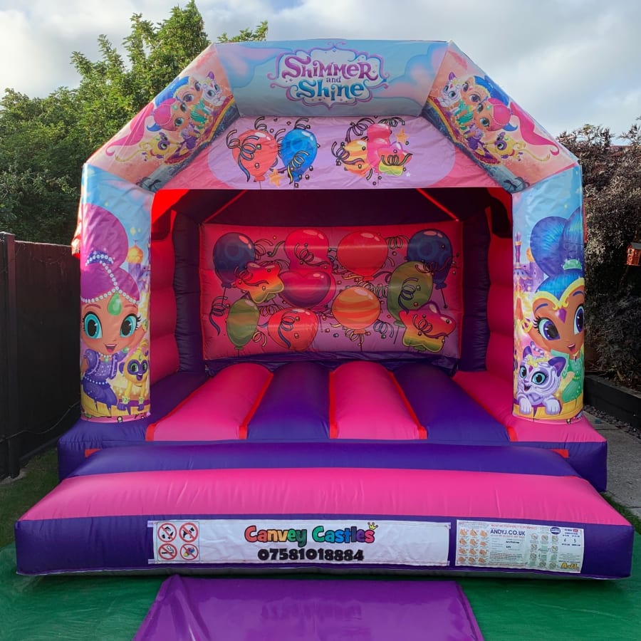 Bring a touch of magic and a splash of color to your next event with our 12ft x 12ft Pink and Purple Shimmer and Shine Bouncy Castle. Perfect for birthday parties, family gatherings, or community events, this enchanting bouncy castle will captivate children and create unforgettable memories. Its vibrant pink and purple hues adorned with Shimmer and Shine prints will instantly transport your little ones to a world of whimsical fun and adventure.