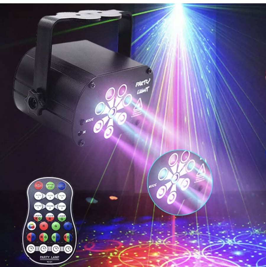 The party light integrates LED laser light and LED RGB light into one light, giving lighting effect of 2 kinds of light, 60 kinds of patterns can create a rousing atmosphere and meet any of your party needs