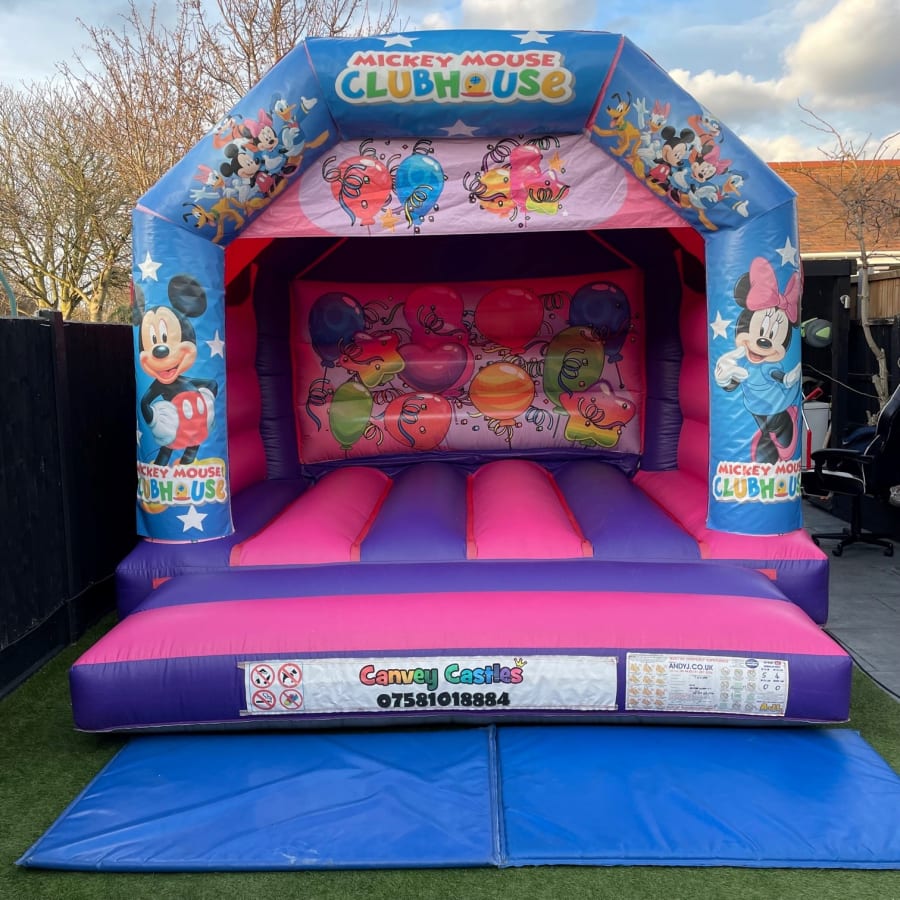 Whether you're hosting a birthday party, a family gathering, or a community event, our 12ft x 12ft Pink and Purple Mickey Mouse Clubhouse Bouncy Castle in Essex is the perfect addition to bring joy and excitement. Our team at Canvey Castles is dedicated to making your event a success, offering reliable delivery and setup services throughout Essex.