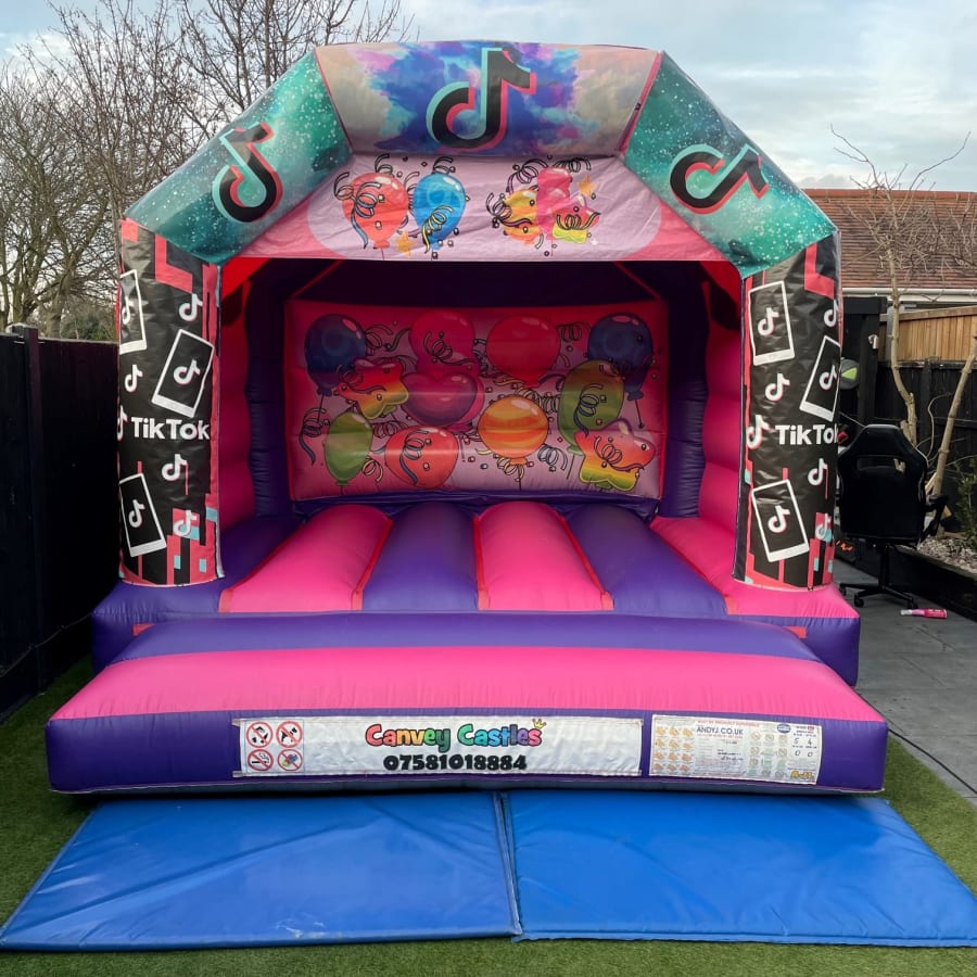 Don't miss out on the chance to elevate your event with this exciting bouncy castle. Contact us now to reserve your 12ft x 12ft Pink and Purple Tik Tok Bouncy Castle in Essex. Let Canvey Castles bring joy and excitement to your next celebration!