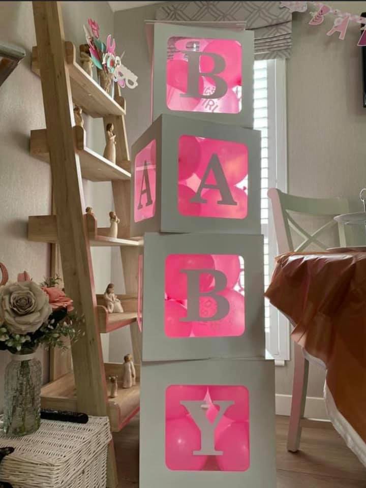 LARGE BABY BOXES, HIGHLY EFFECTIVE A GREAT FOR BABY SHOWERS IN ESSEX. INSERT ANY COLOUR BALLOONS INTO THE BOXES. STACK THEM UP TO ACHIEVE A GREAT BACKDROP MASTER PIECE! (BALLOONS NOT INCLUDED)