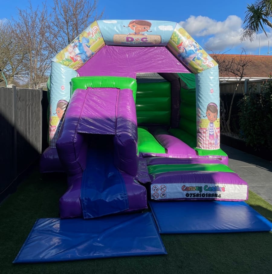 Planning a party in Essex? Look no further! The 12ft x 17ft Green and Purple Doc Mcstuffins Slide Combo Bouncy Castle in Essex is the perfect way to entertain kids and ensure your event is a hit. Whether you're hosting a birthday celebration, a school fair, or a family reunion, this bouncy castle provides hours of entertainment. Its unique combination of a bouncy area and a slide offers double the fun, keeping children engaged and active.