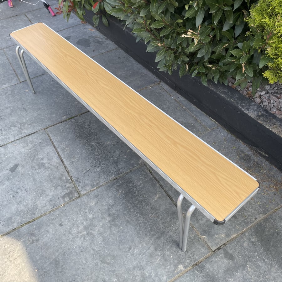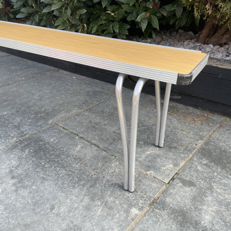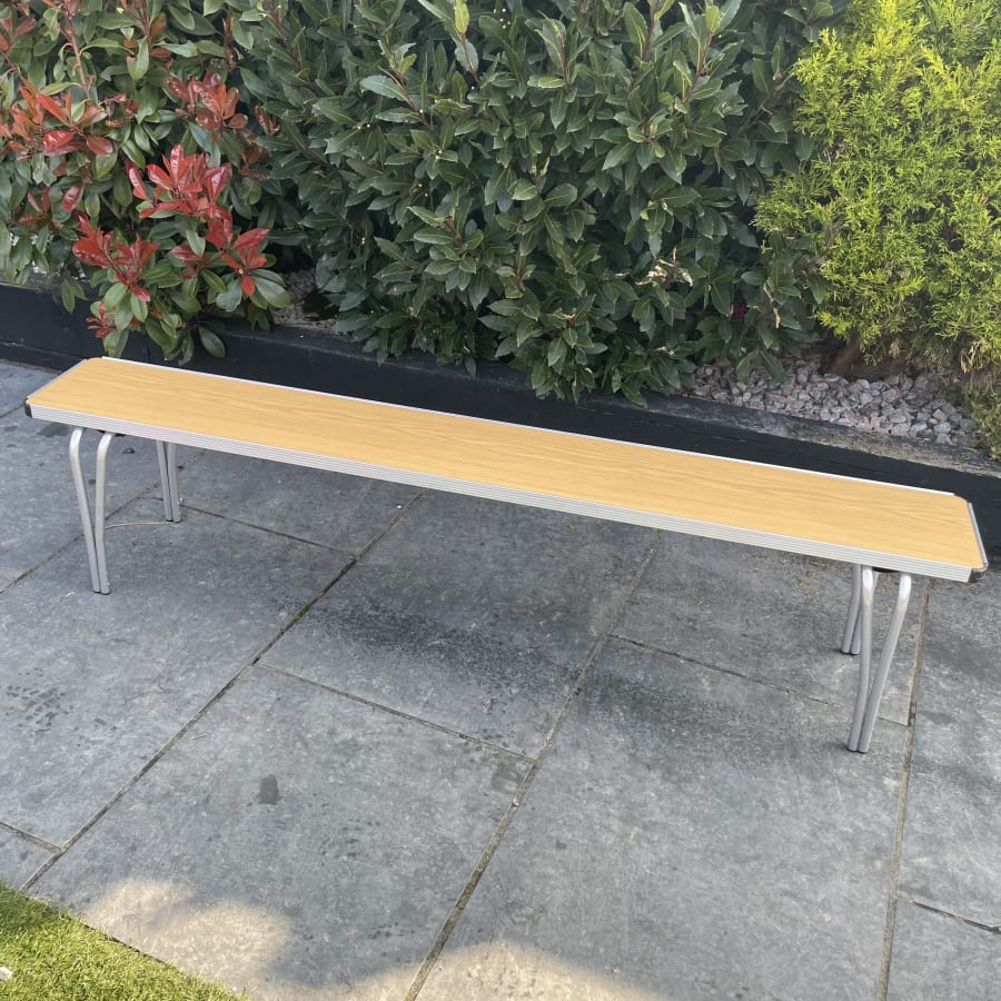 This folding bench had a wooden top finish with aluminium frame. Seats four people.