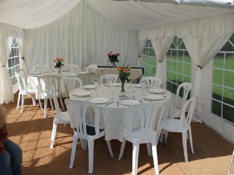 Why not improve your Party tent / marquee with our roof lining creating an effect and atmosphere perfect for parties, christenings wedding etc, our team install and dress the marquee linings for you.