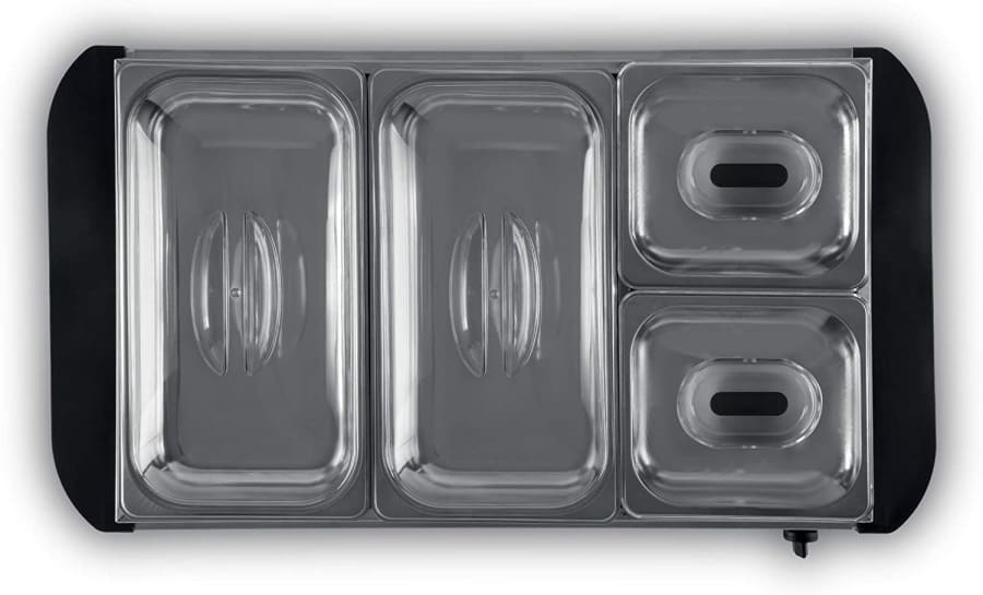 The 5-pan configuration means that it has the capacity to hold and warm five individual pans of food at the same time. This makes it ideal for catering events, buffet-style service, and any other situation where large amounts of food need to be kept warm and ready for serving.