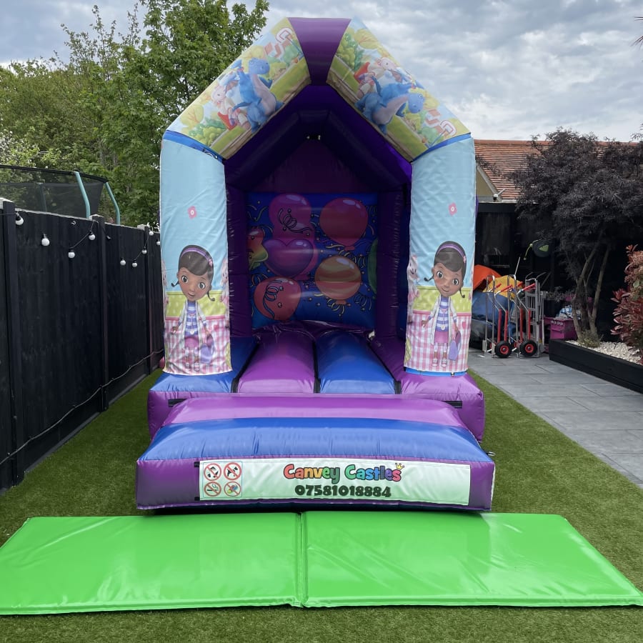 Don't miss the opportunity to make your event unforgettable. Contact us today to book the 8ft x 12ft Blue and Purple Doc McStuffin Bouncy Castle and bring a touch of magic to your child's special day. Our friendly team is ready to ensure your event is a resounding success!