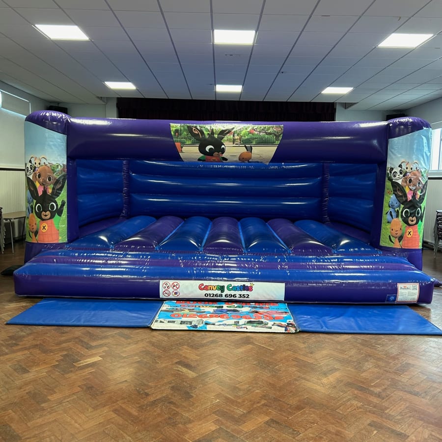Glossy Blue and Purple Bing Bunny Bouncy Castle is available to hire across Essex, including Benfleet, Basildon & Southend, as well as all areas of our county.