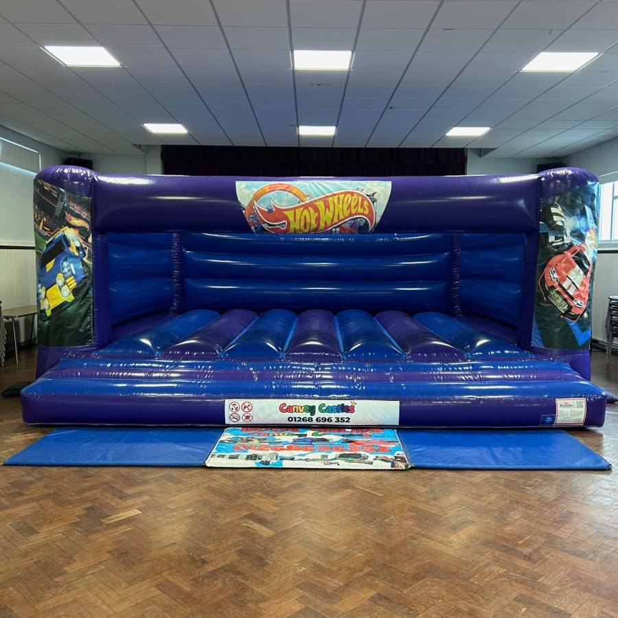 Glossy Blue and Purple Hot Wheels Bouncy Castle is available to hire across Essex, including Benfleet, Basildon & Southend, as well as all areas of our county.