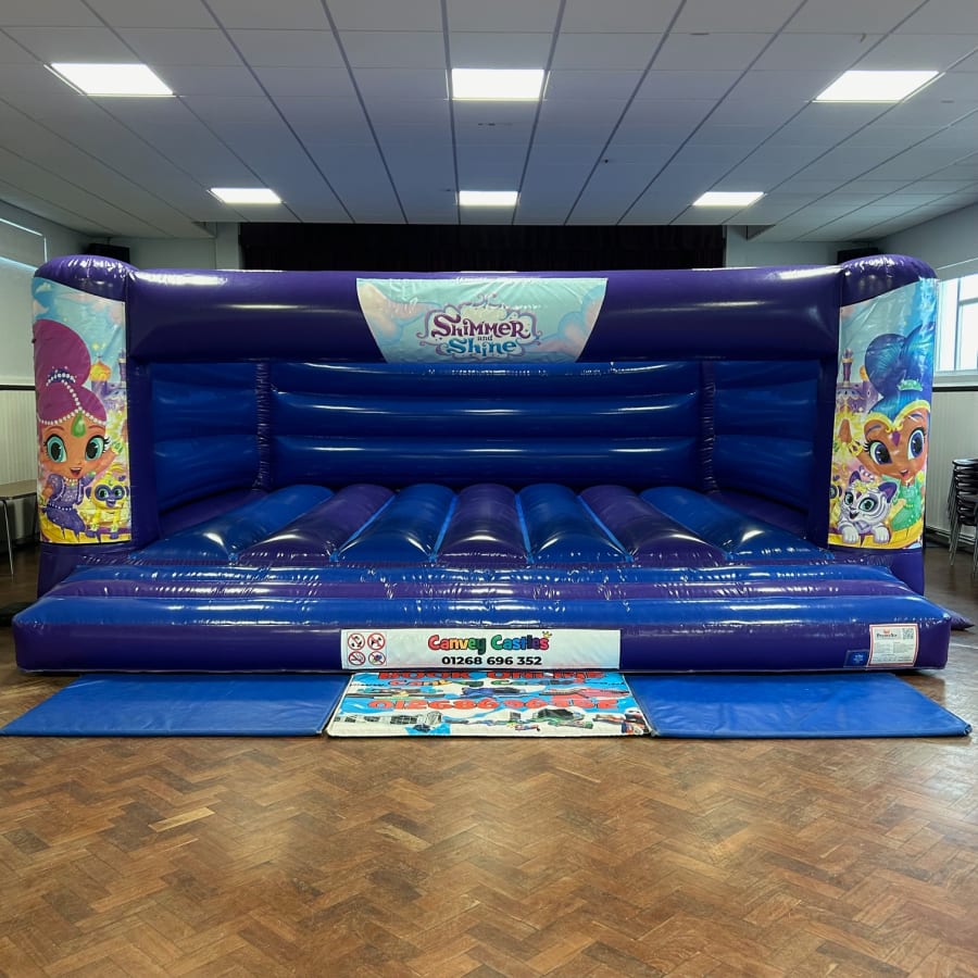 Glossy Blue and Purple Shimmer and Shine Bouncy Castle is available to hire across Essex, including Benfleet, Basildon & Southend, as well as all areas of our county.