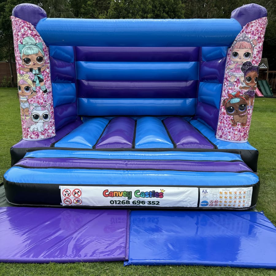 Don't miss out on the fun! Hire our 12ft x 12ft Blue and Purple LOL Dolls Design 2 Low Height Bouncy Castle for your next event in Essex and watch the children's faces light up with excitement. Contact Canvey Castles today to reserve your bouncy castle and make your event truly unforgettable!