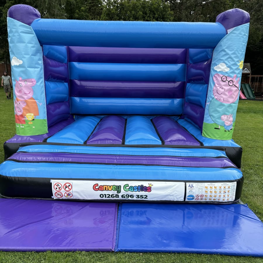 Make your child's party a memorable one with our 12ft x 12ft Blue and Purple Peppa Pig Design 2 Low Height Bouncy Castle. Perfect for young Peppa Pig fans, this colorful and vibrant bouncy castle will provide hours of fun and entertainment.