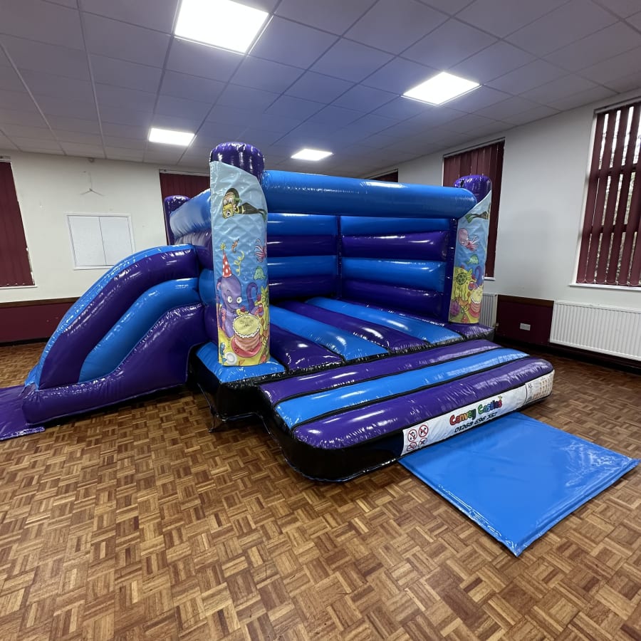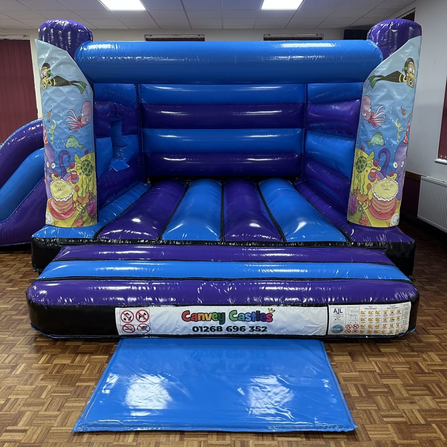 Bring ocean magic to your next event with the 16ft x 17ft Blue and Purple Under the Sea Low Height Slide Combo Bouncy Castle. This compact, eye-catching unit blends safe low-height design with a fun slide and bright under-the-sea graphics. Perfect for younger children, it delivers big smiles in a small footprint. canvey castles 16ft x 17ft Blue and Purple Under the Sea Low Height Slide Combo Bouncy Castle in essex