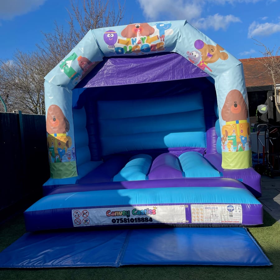 At Canvey Castles, we are committed to providing top-notch inflatable rentals that bring joy and excitement to any occasion. Our 12ft x 12ft Light Blue and Purple Hey Duggee Bouncy Castle in Essex is just one of the many options we offer to ensure your event is a hit.