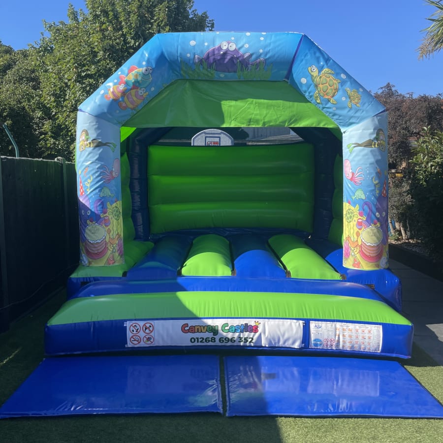12ft x 12ft Green and Blue Under The Sea Bouncy Castle