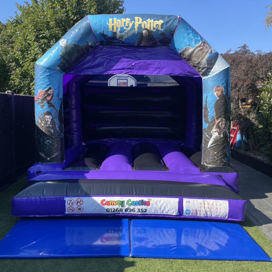 Step into a world of magic and wonder with our enchanting 12ft x 12ft Black and Purple Harry Potter Bouncy Castle. Perfectly designed for all young wizards and witches, this bouncy castle brings the exciting realm of Hogwarts right to your backyard. Featuring iconic imagery and a spellbinding design, it's the ideal centerpiece for any Harry Potter-themed party or event in Essex.