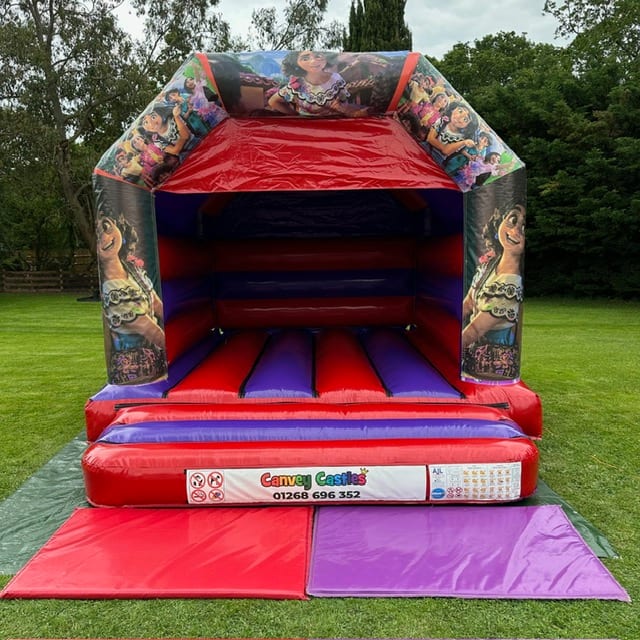 Make your party unforgettable with the 12ft x 15ft Red and Purple Encanto Bouncy Castle from Canvey Castles. Book now to bring the magic to your event!
