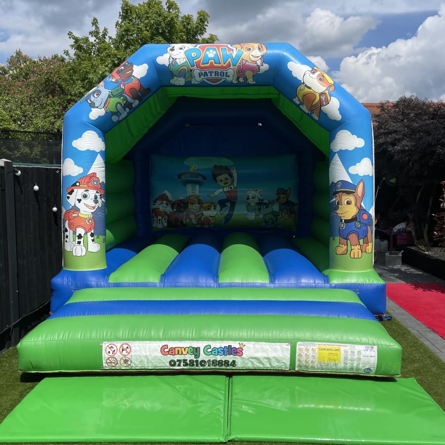 12ft x 15ft Blue and Green Paw Patrol Printed Bouncy Castle