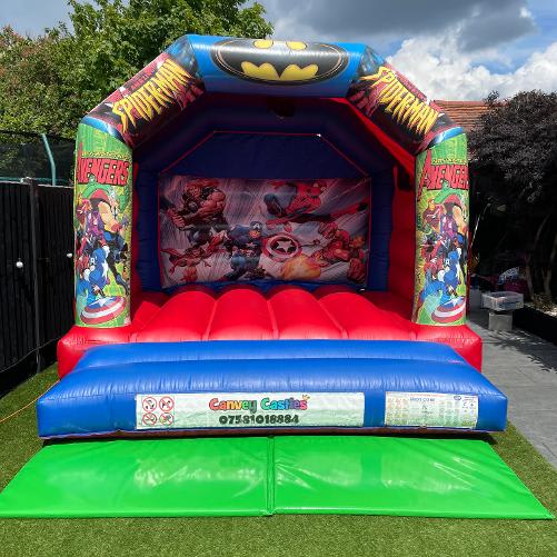 Bring your event to life with Canvey Castles’ 12ft x 12ft Blue and Red Avengers Printed Bouncy Castle in Essex. Contact us today to book this exciting inflatable and let the superhero adventures begin!