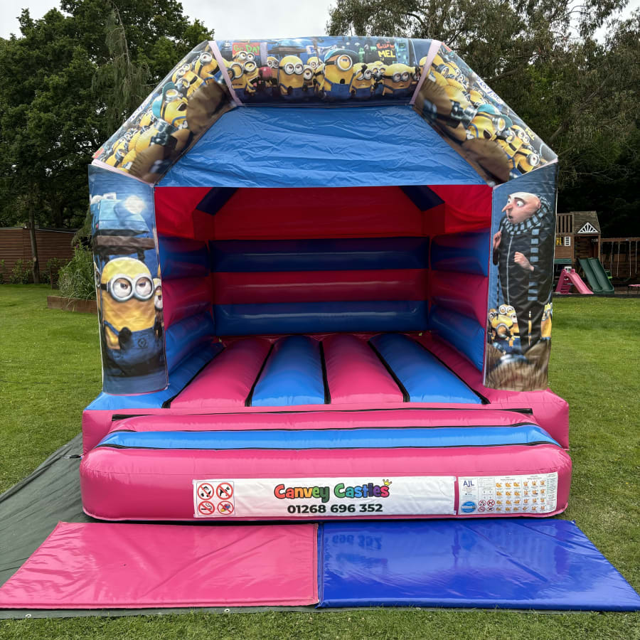 Book our 12ft x 15ft Blue and Pink Minions Bouncy Castle today and add a touch of magic to your next event in Essex!