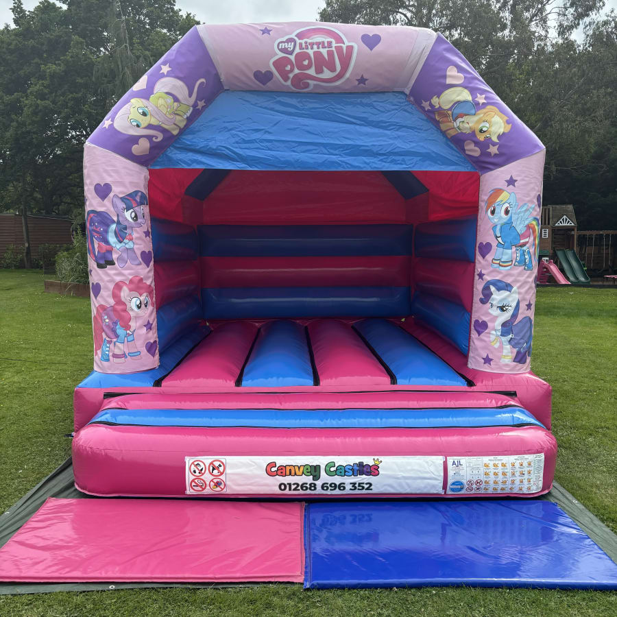 At Canvey Castles, we prioritize safety and quality. Our bouncy castle is made from durable materials to ensure a secure and enjoyable experience for all users. The vibrant colors and My Little Pony theme add an extra touch of magic to the overall design, making it a standout attraction at any event.