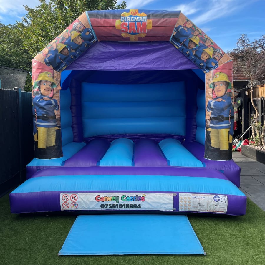 Make Your Event Unforgettable with the 12ft x 12ft Light Blue and Purple Fireman Sam Bouncy Castle