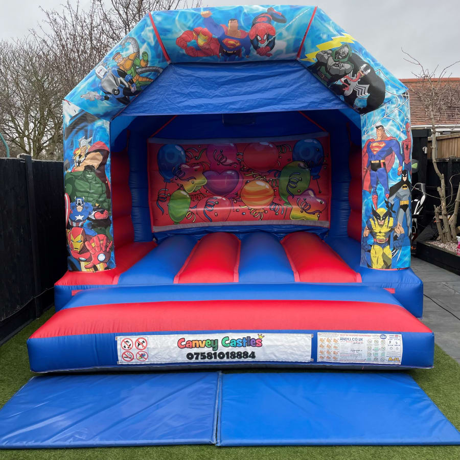 Experience the ease of hosting a memorable event with Canvey Castles. We proudly offer our services throughout Essex, ensuring your bouncy castle rental is as convenient as it is fun. Our professional team handles delivery, setup, and takedown, so you can focus on enjoying the day with peace of mind. With our canvey castles 12ft x 12ft Blue and Red Avengers Bouncy Castle in Essex, you can be assured of quality service and a hassle-free experience.