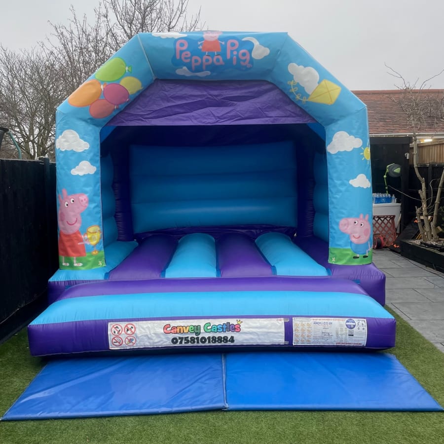 Looking to make your next event a hit? Consider the 12ft x 12ft Light Blue and Purple Peppa Pig Design 1 Bouncy Castle in Essex. With Canvey Castles, you're guaranteed a blend of fun, safety, and convenience, making it the perfect choice for birthday parties, school fairs, and more.