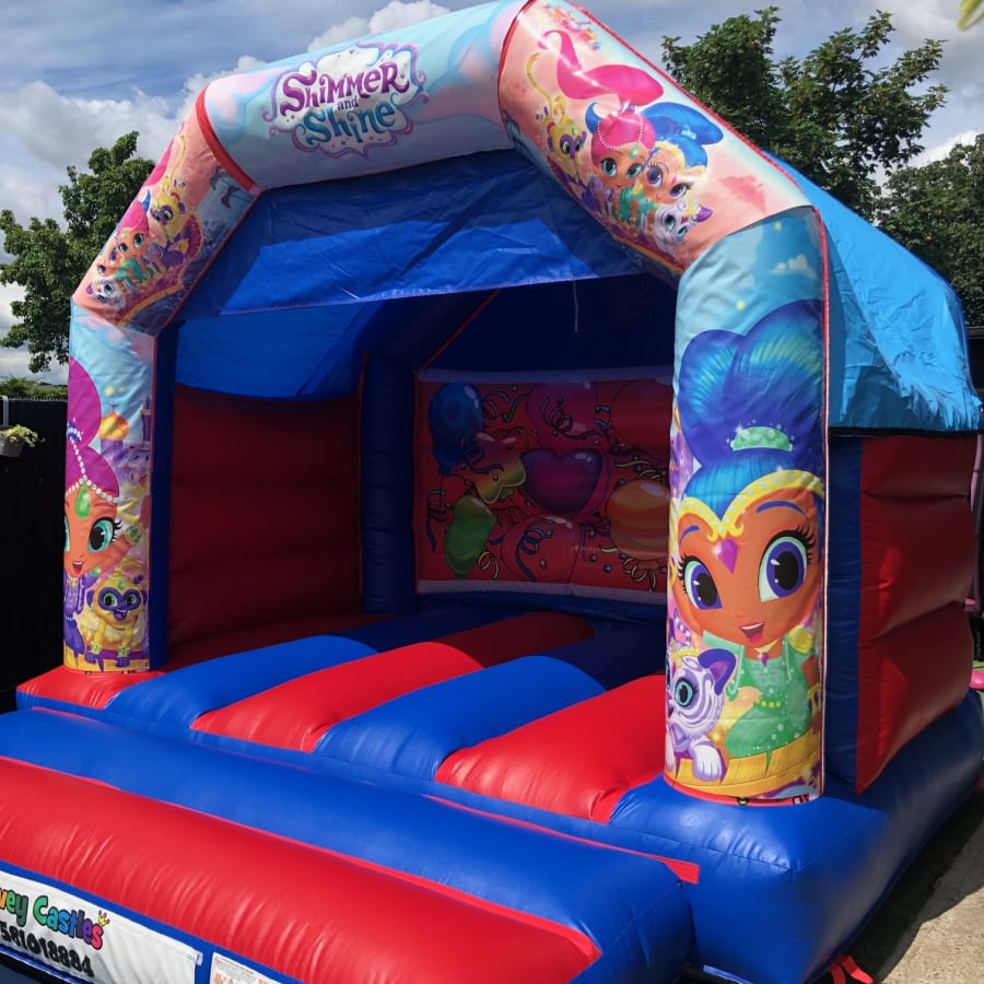 Don’t wait to bring the excitement to your event. Contact us today to reserve the 12ft x 12ft Blue and Red Shimmer and Shine Bouncy Castle and make your gathering a memorable one!