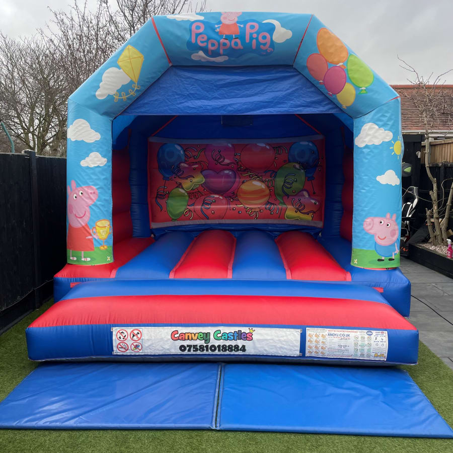 At Canvey Castles, we offer a wide range of exciting inflatables for hire, and our 12ft x 12ft Blue and Red Peppa Pig Design 1 Bouncy Castle in Essex is one of our most popular options. We pride ourselves on delivering top-notch service and ensuring that your event is a memorable success. Our team is dedicated to providing a seamless experience from booking to setup, ensuring your peace of mind.
