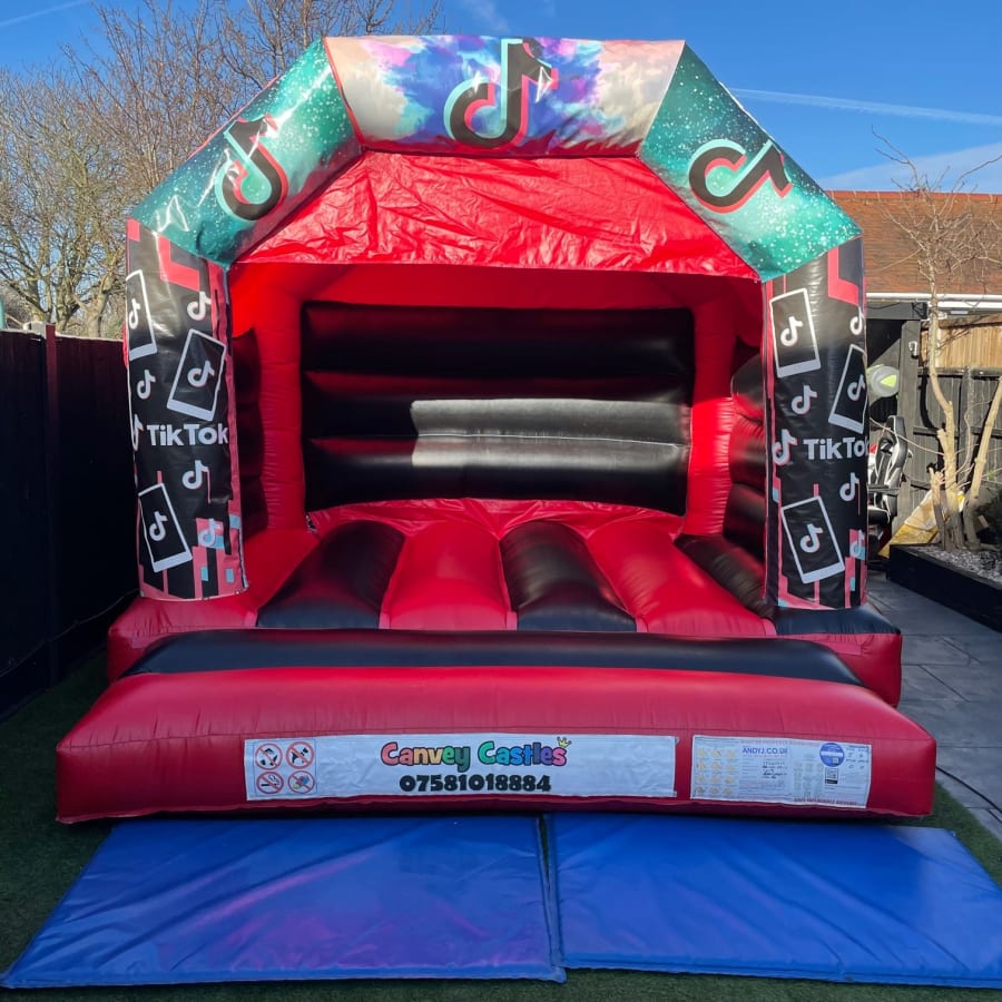 Unleash the Fun with the 12ft x 12ft Black and Red Tik Tok Bouncy Castle
