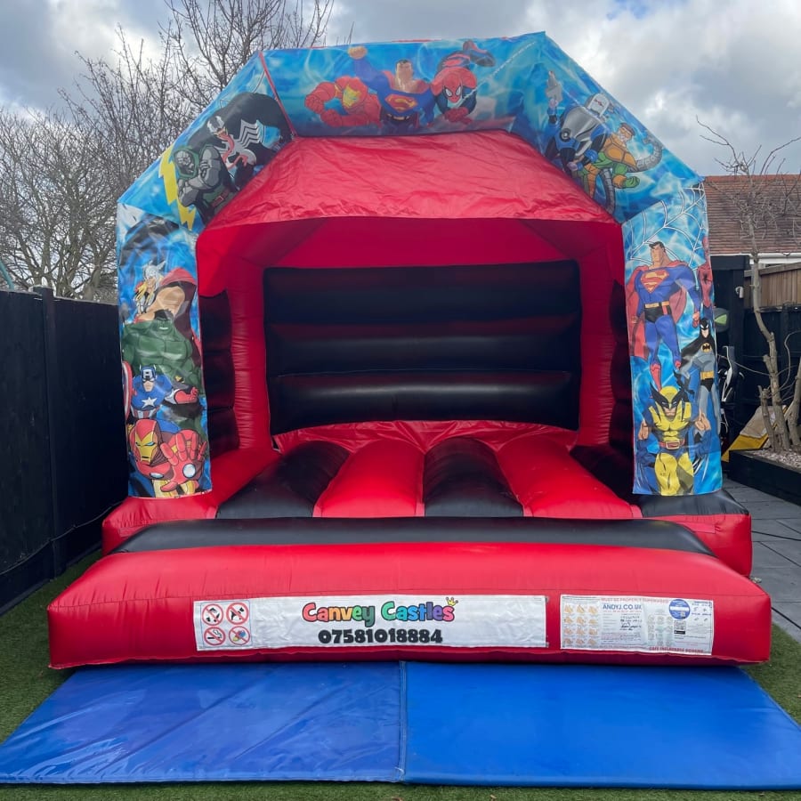 Make your party unforgettable by booking the 12ft x 12ft Black and Red Avengers Bouncy Castle in Essex through Canvey Castles. With our reliable delivery and setup services, bringing the excitement of the Avengers to your doorstep has never been easier. Contact us today to reserve your date and transform your event into a superhero spectacle!