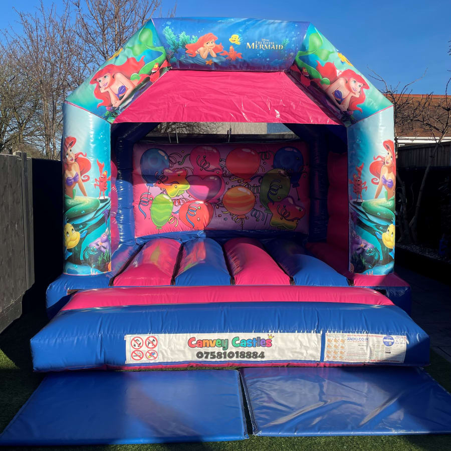 At Canvey Castles, we are dedicated to offering top-notch service with our 12ft x 12ft Pink and Blue Little Mermaid Bouncy Castle in Essex. Our team ensures timely delivery, safe setup, and thorough inspection, so you can have peace of mind knowing that your event is in capable hands. Let us bring the magic of the Little Mermaid to your doorstep!