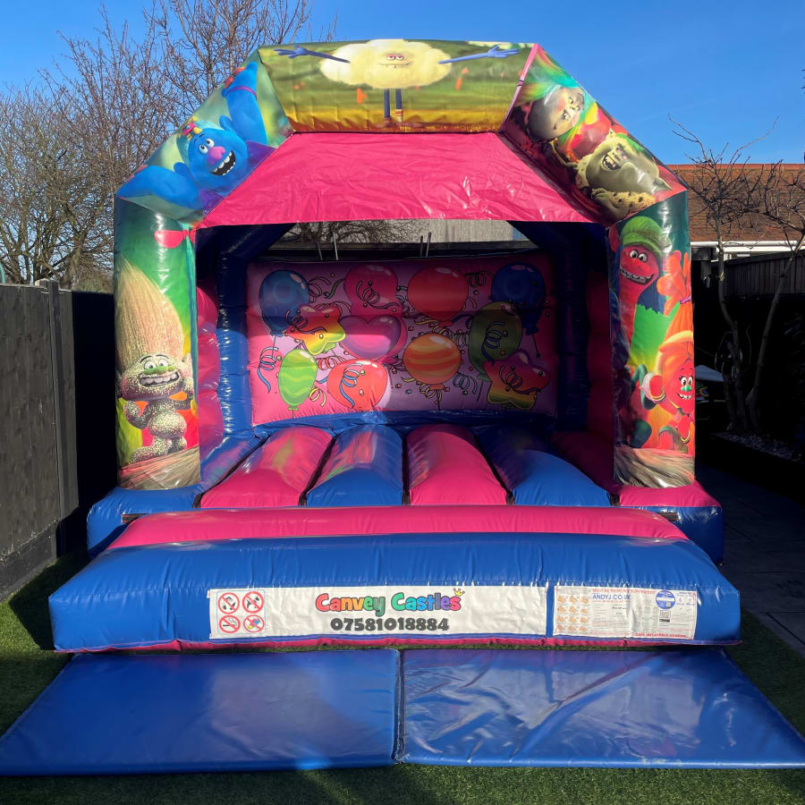 Don't miss the opportunity to elevate your event with the 12ft x 12ft Pink and Blue Trolls Bouncy Castle in Essex. Contact Canvey Castles today to book this enchanting inflatable and let the fun begin!