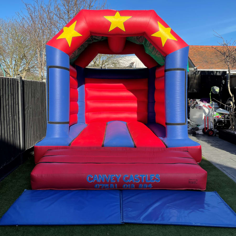 Let your event be the talk of the town with the 11ft x 13ft Red and Blue Star Bouncy Castle. Contact Canvey Castles in Essex today to reserve this fantastic inflatable and ensure your party is filled with laughter and joy!