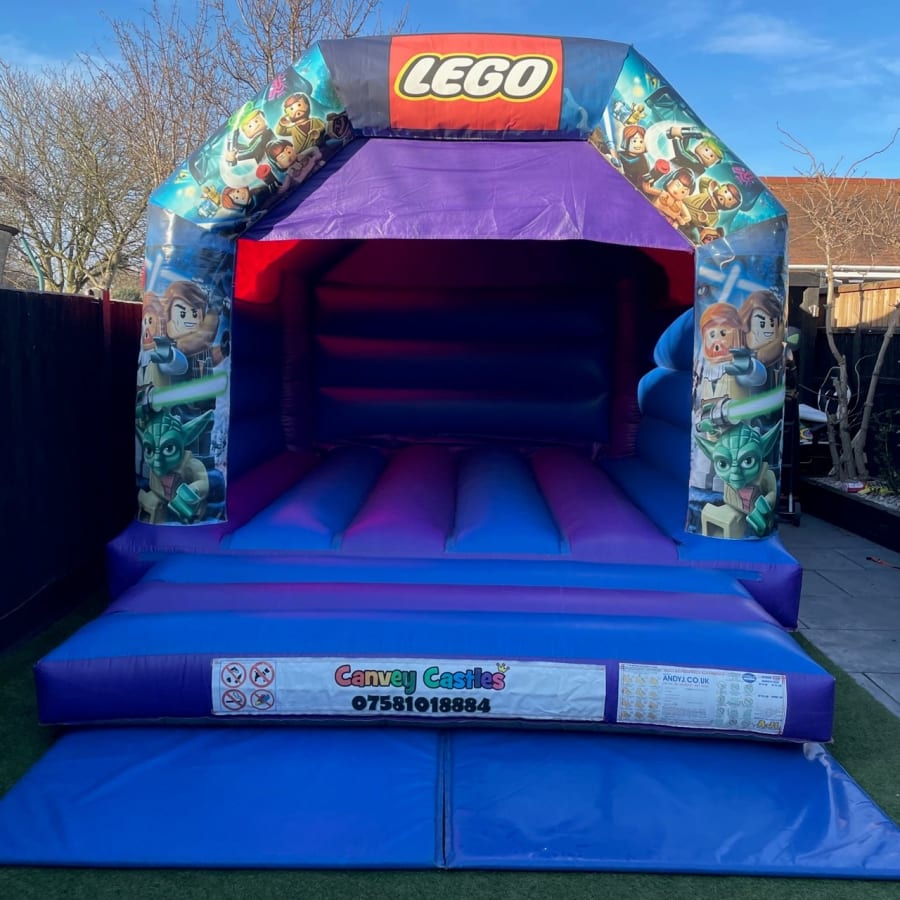 Ready to take your event to the next level? Book the 12ft x 15ft Blue and Purple Lego Star Wars Bouncy Castle in Essex today and give your guests an unforgettable experience. Let the force be with you as you create cherished memories with Canvey Castles!
