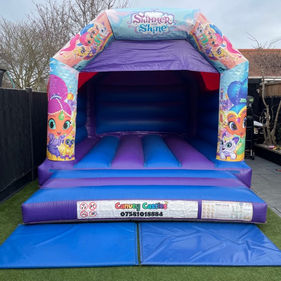 For those in Essex seeking a reliable and hassle-free rental service, look no further than canvey castles 12ft x 15ft Blue and Purple Shimmer And Shine Bouncy Castle in essex. We offer prompt delivery and set-up, ensuring your event kicks off smoothly. Our team of professionals prioritizes customer satisfaction, providing you with a seamless rental experience from start to finish.